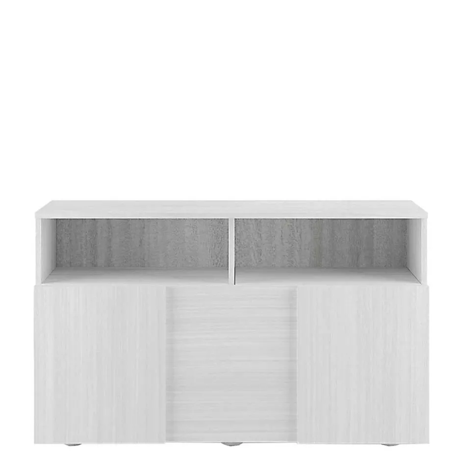 - Wandmontage sowie auf schwarzen Kunsttoff-Füßen stehend