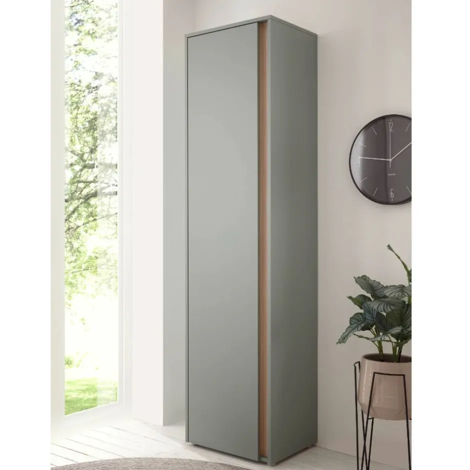 - Zeitgemäße Garderobenmöbel in Graugrün und Eichefarben
