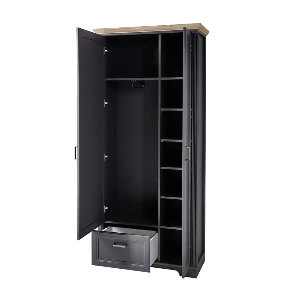 - Moderne Garderobenkombination in Dunkelgrau und Eichefarben