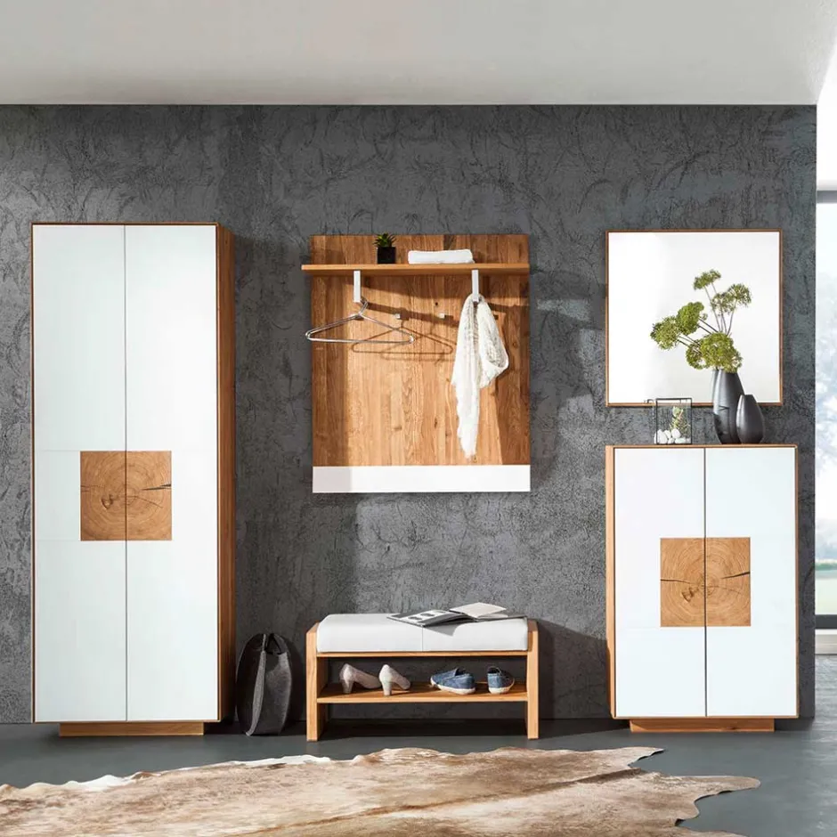 - Exklusives Garderoben Set in Weiß und Wildeichefarben