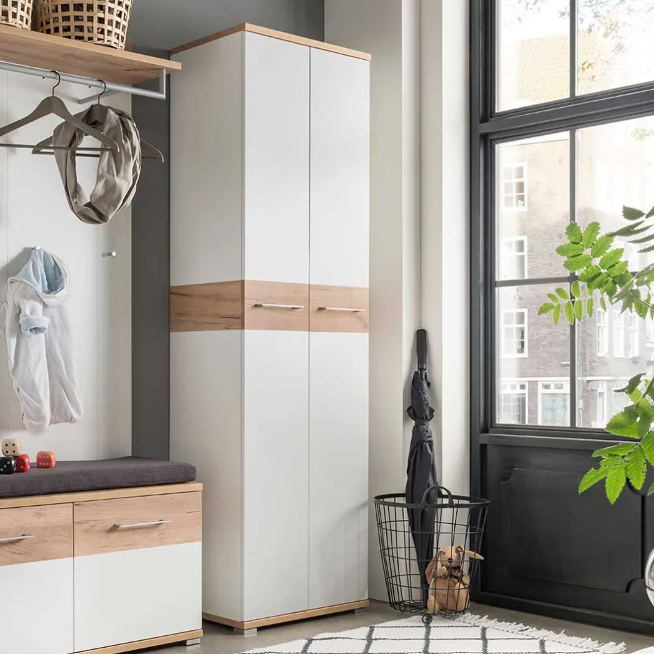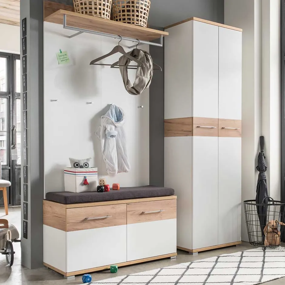 - Tolles Garderoben-Set in Weiß und Eichefarben