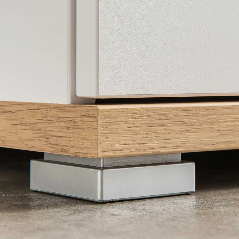 - Oberflächen in Weiß und im Holzdekor Eiche melaminbeschichtet