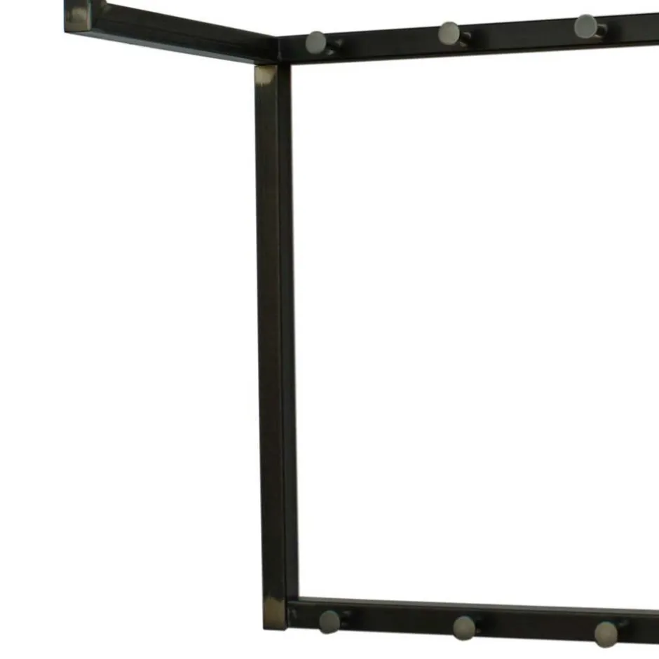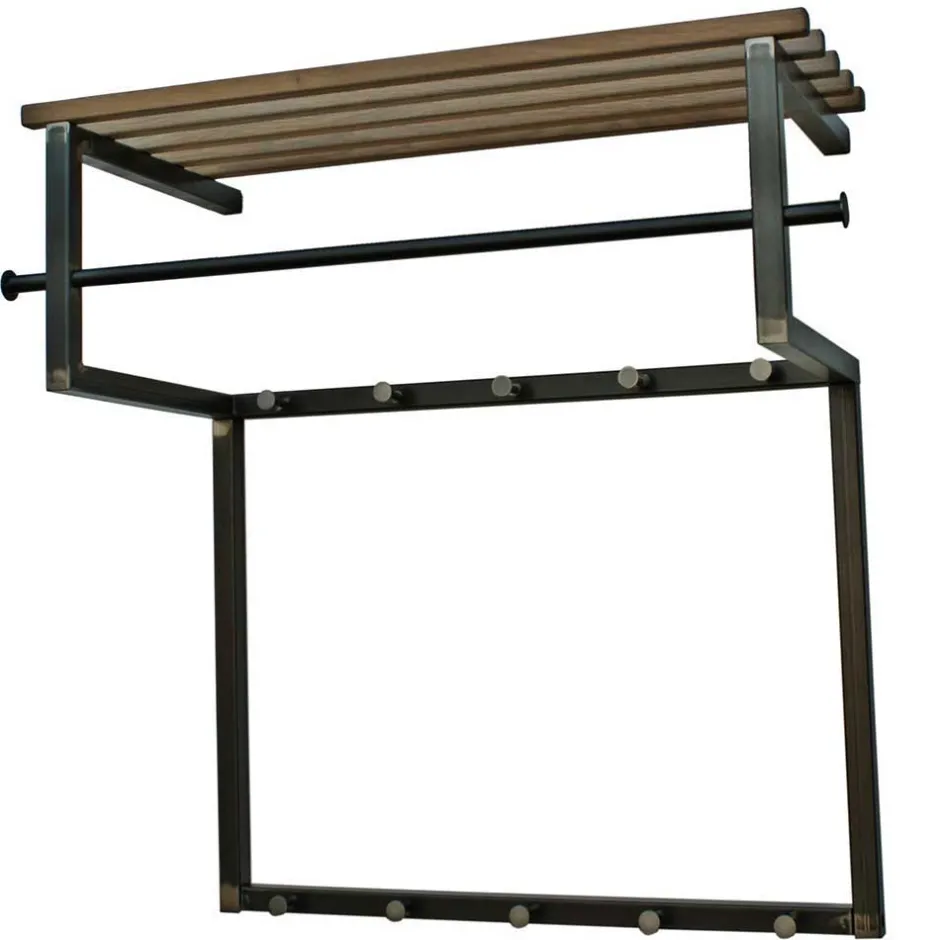 - Ausgestattet mit zwölf Kleiderhaken (zwei seitlich und zehn frontal), zudem bieten zwei Stangen seitlich und eine unterhalb der Hutablage Platz für Kleiderbügel
