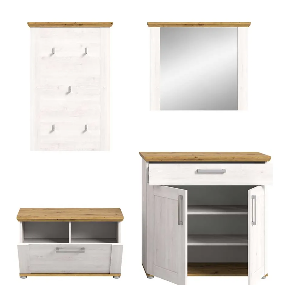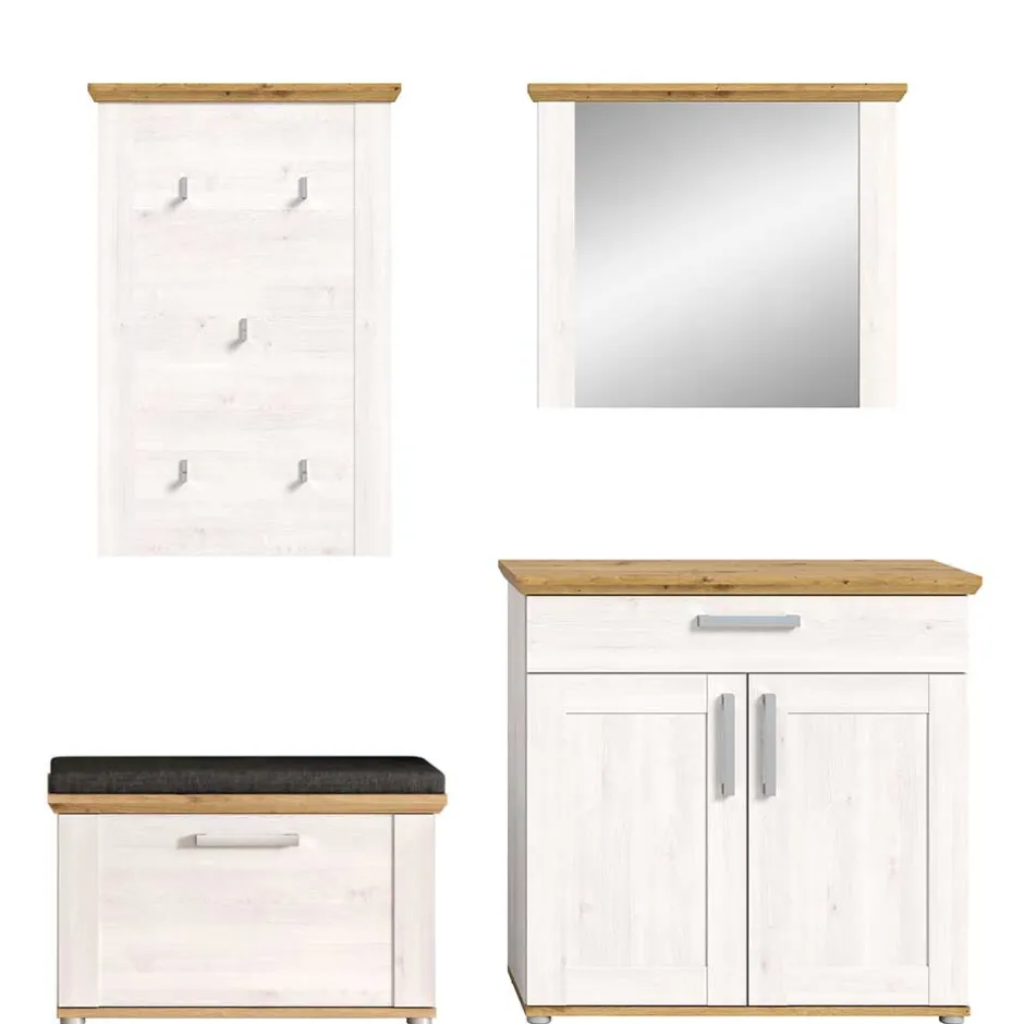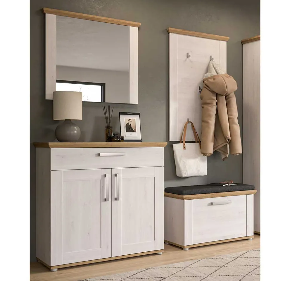 - Ansprechende Garderobenmöbel in Holzoptik Lärche Weiß und Wildeichefarben