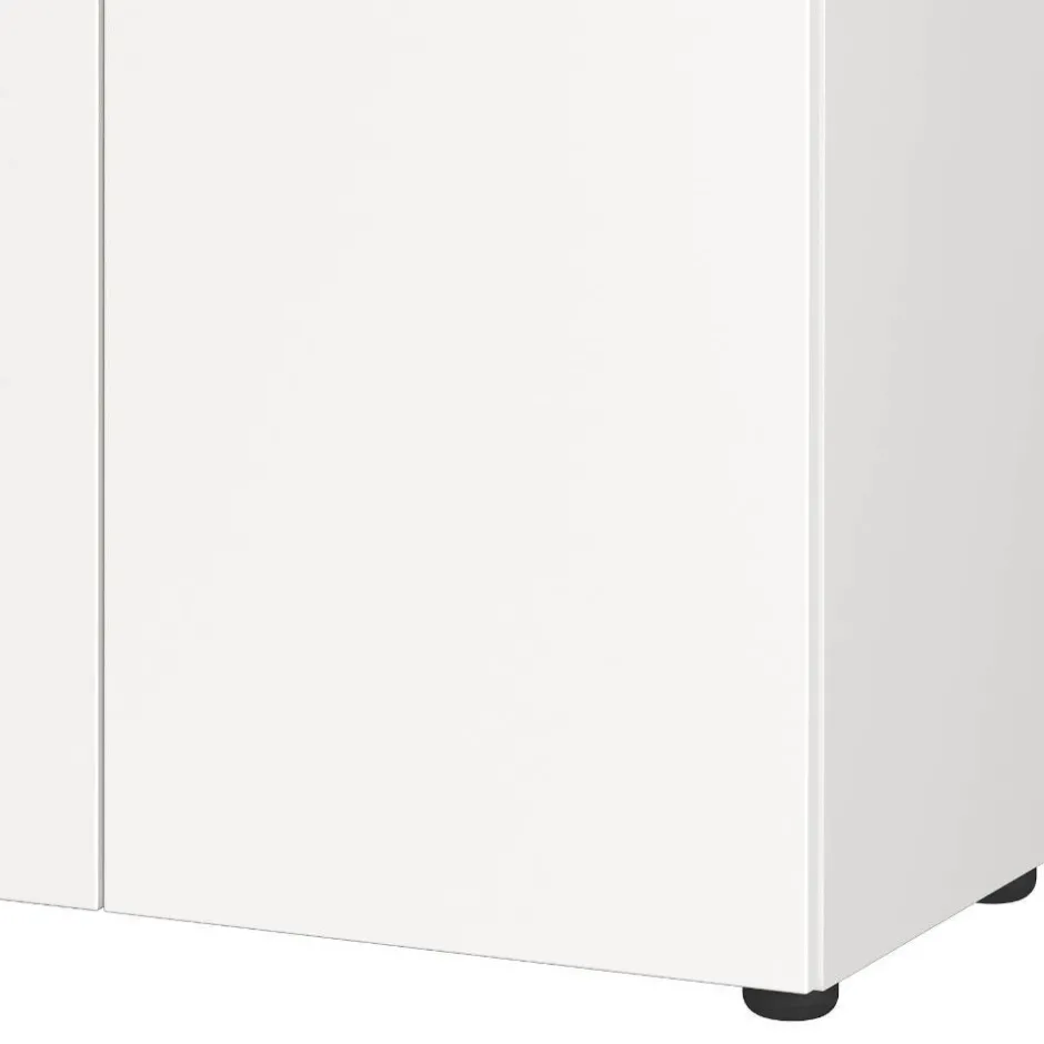 - Der Schrank steht auf schwarzen Kunststoffgleitern