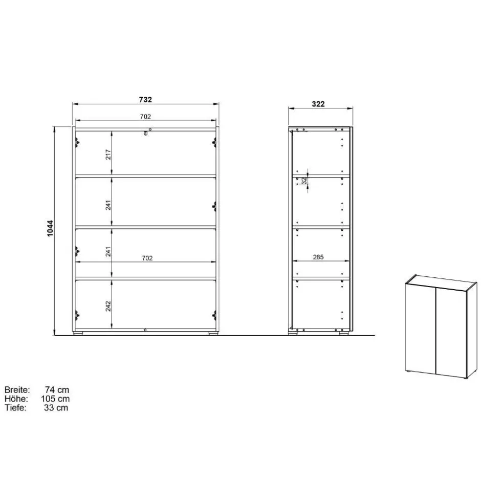 - Maße: BxHxT: 73,2×104,4×32,2 cm