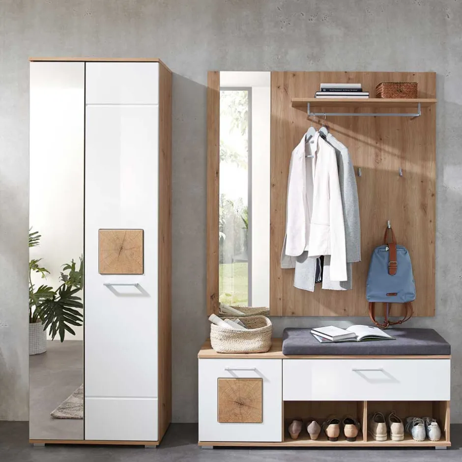 - Trendige Garderobenmöbel in Weiß und Wildeichefarben