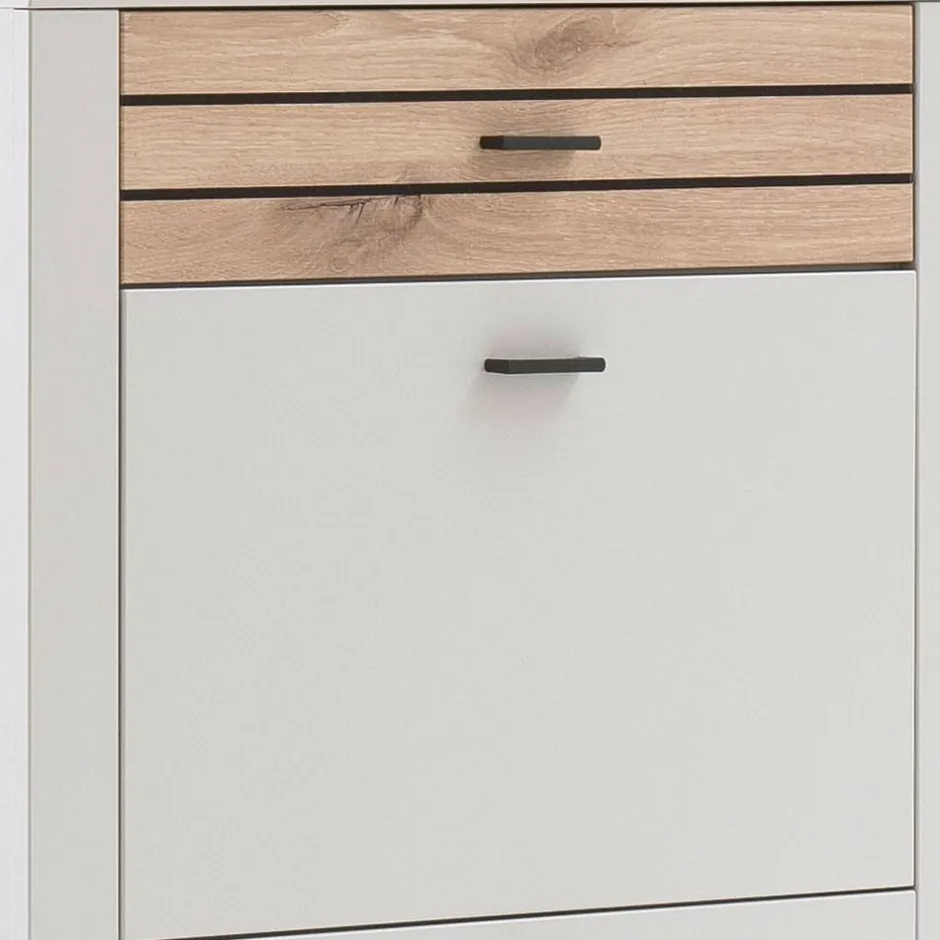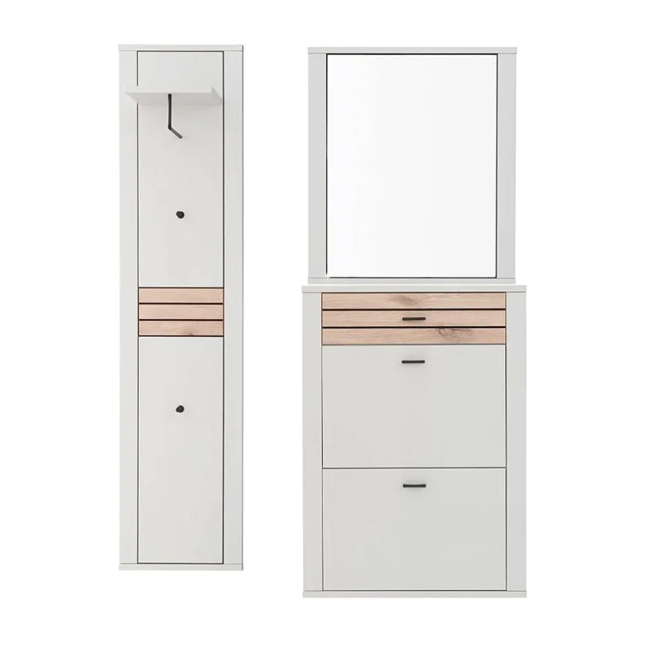 - Trendige Garderobenmöbel in Lichtgrau und Wildeichefarben
