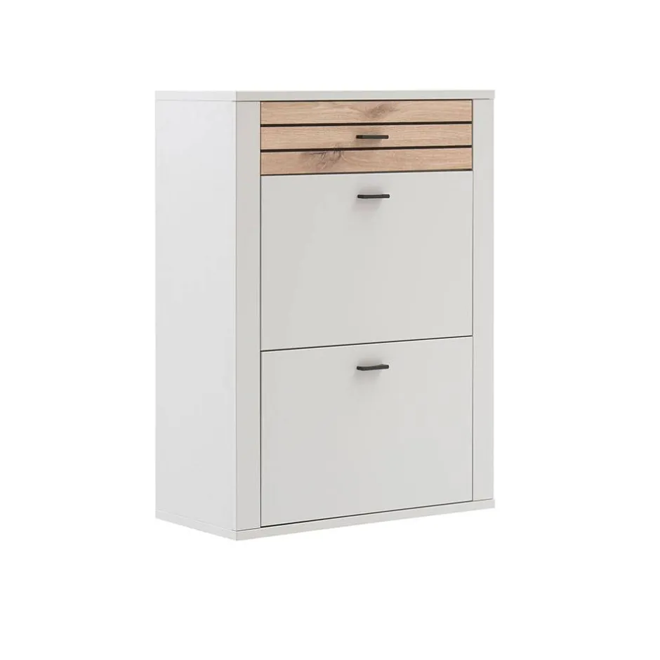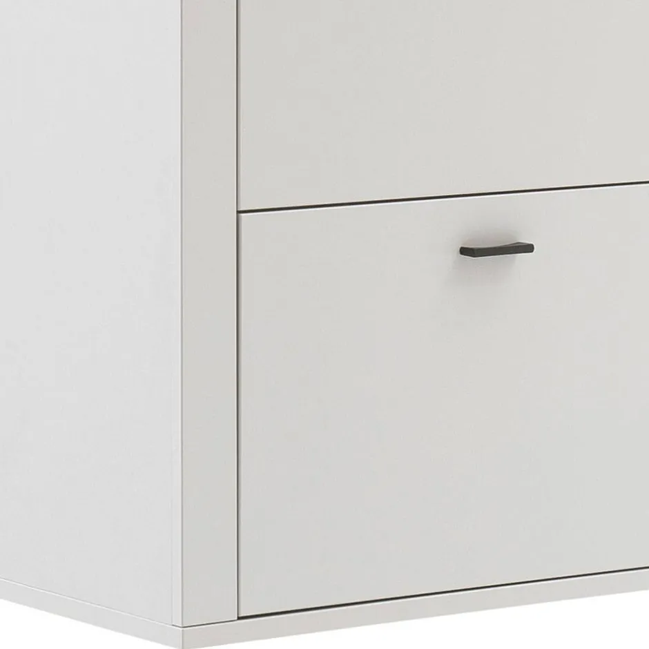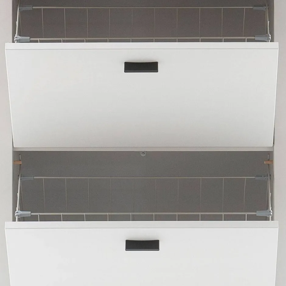 - Zwei Schuhklappen mit gedämpften Metallbeschlägen bieten Platz für max. acht Paar Schuhe bis Größe 39