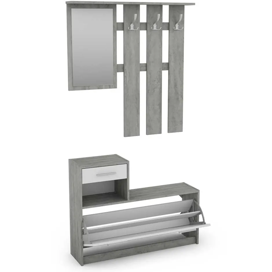 - Trendiges Garderoben Set in Betongrau und Weiß