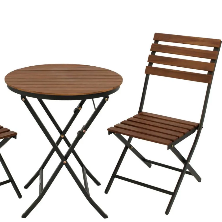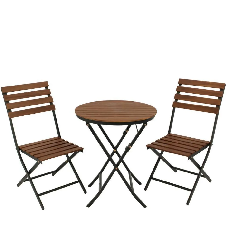 - Kompakte Biergarten Möbel in Akaziefarben und Schwarz