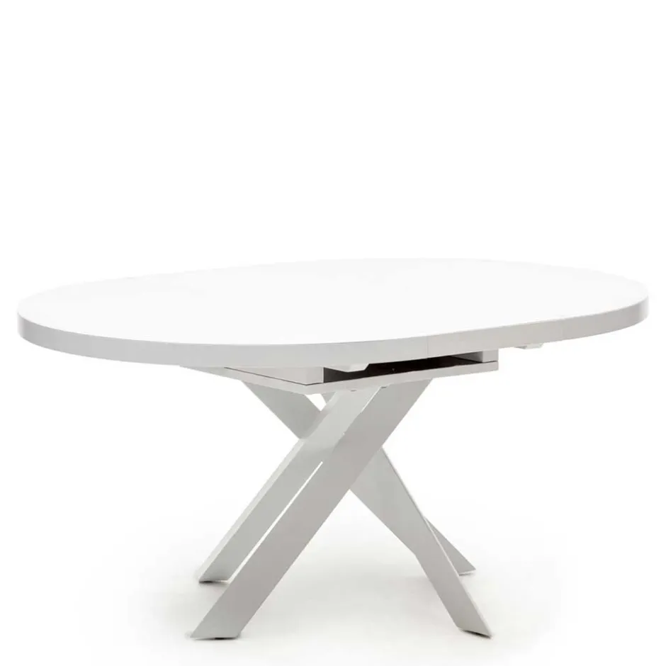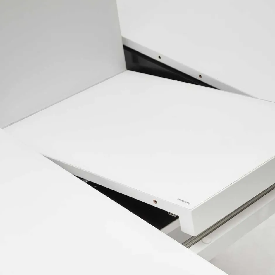 - Tischplatte aus gehärtetem Glas mit einer Basis aus lackierter MDF