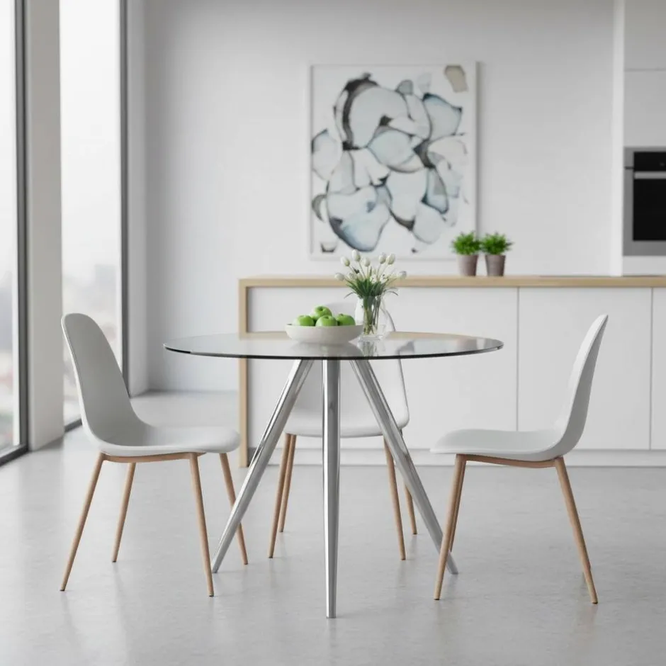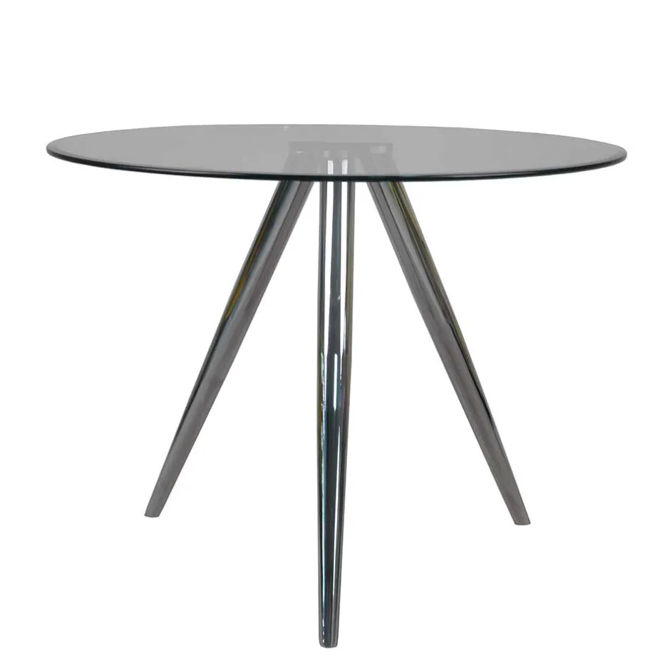- Einmaliger Esstisch in Chromfarben und Transparent