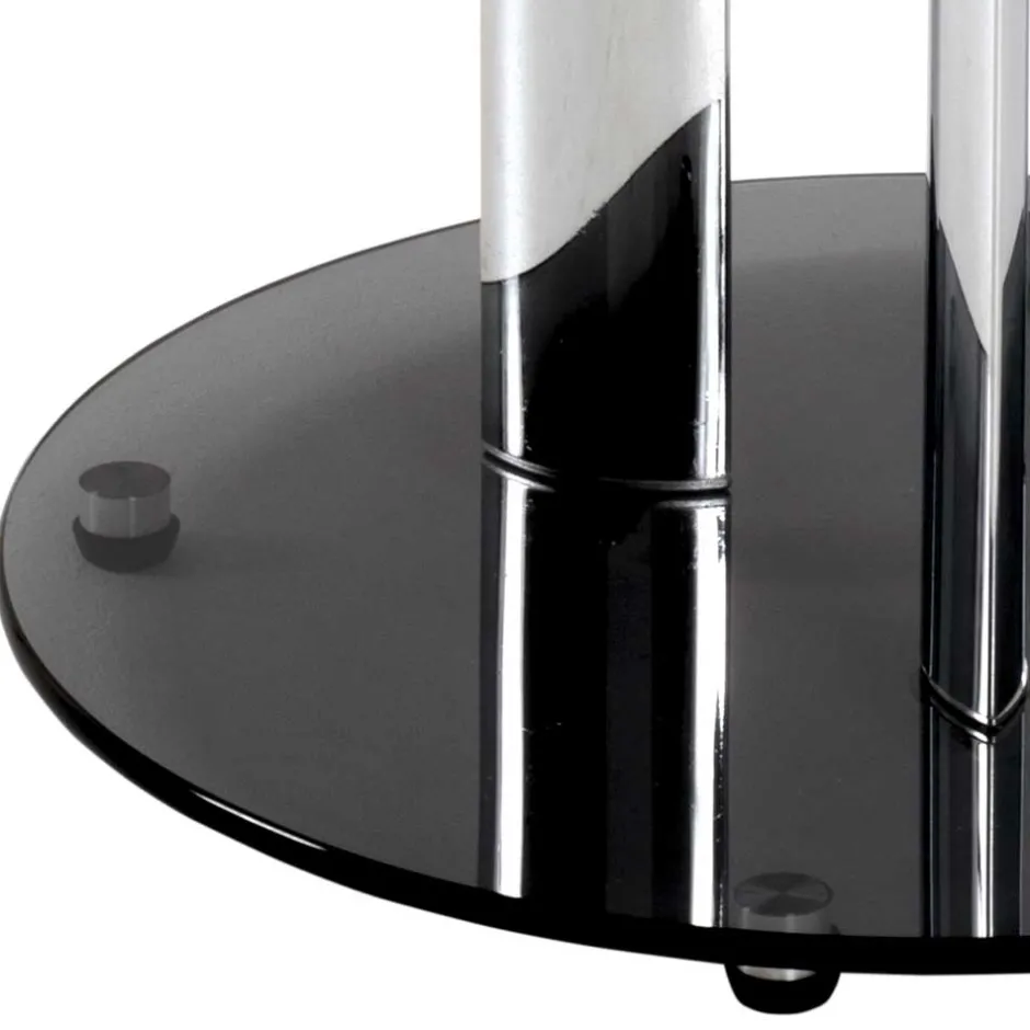 - Drei ellipsenförmige Stahlrohre als Säule auf einer runden Glasplatte (Ø 40 cm)