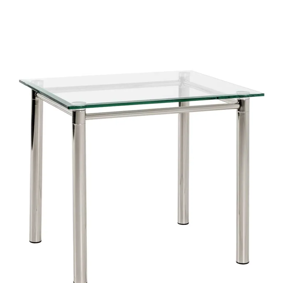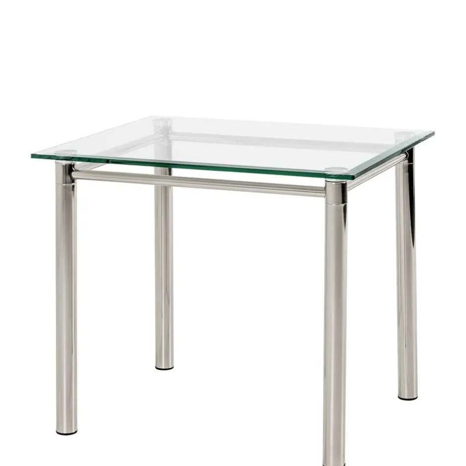 - Eleganter Beistelltisch in Chromfarben und Transparent