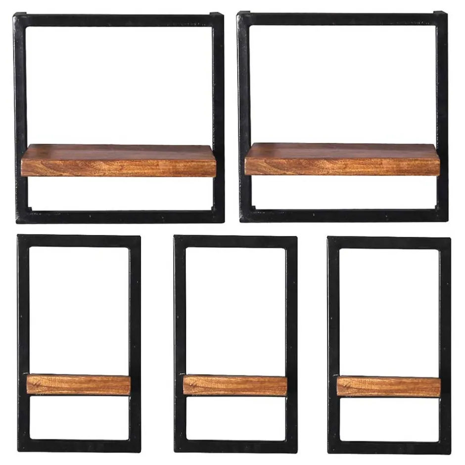 - Zeitgemäße Wandregale in Antikschwarz und Mangoholz Naturfarben