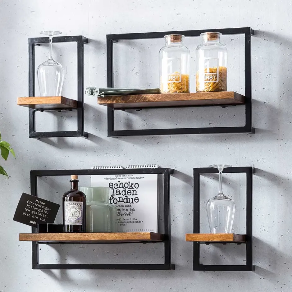- Smartes Hängeregal in Mangoholz Naturfarben und Schwarz