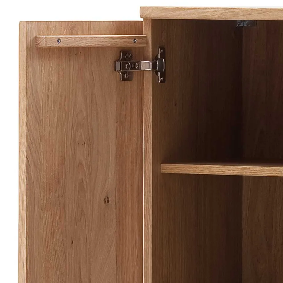 - Aus Balkeneiche Massivholz (Front) und Spanplatte (Korpus) hergestellt