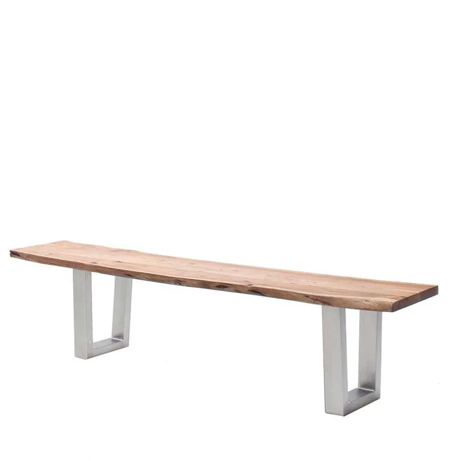 - Aktuelle Esstisch Bank in Akazie Natur- und Edelstahlfarben