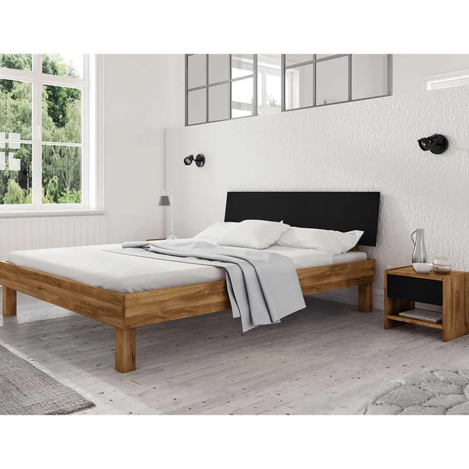 - Topaktuelles Überlänge-Bett mit Nachtkommoden in Wildeichefarben und Schwarz
