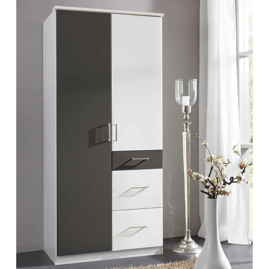 - Topaktueller Kleiderschrank in Weiß und Dunkelgrau