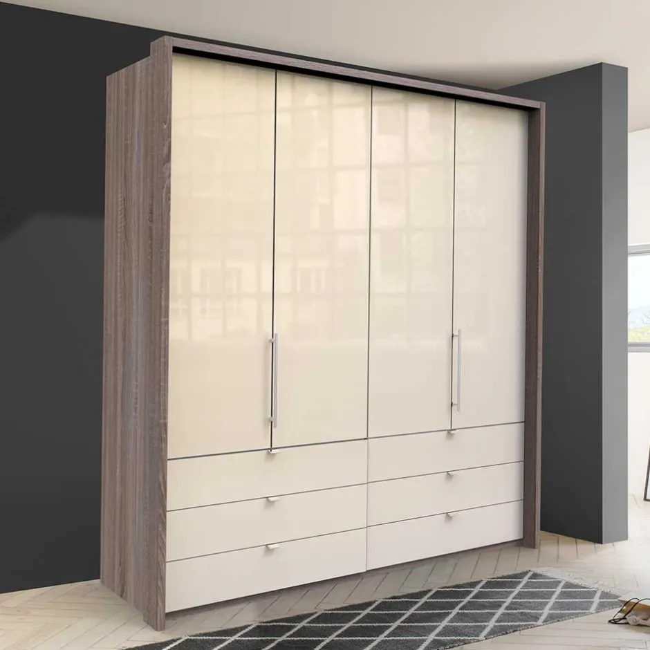 - Luxuriöser Kleiderschrank in Cremeweiß und Eiche Trüffelfarben