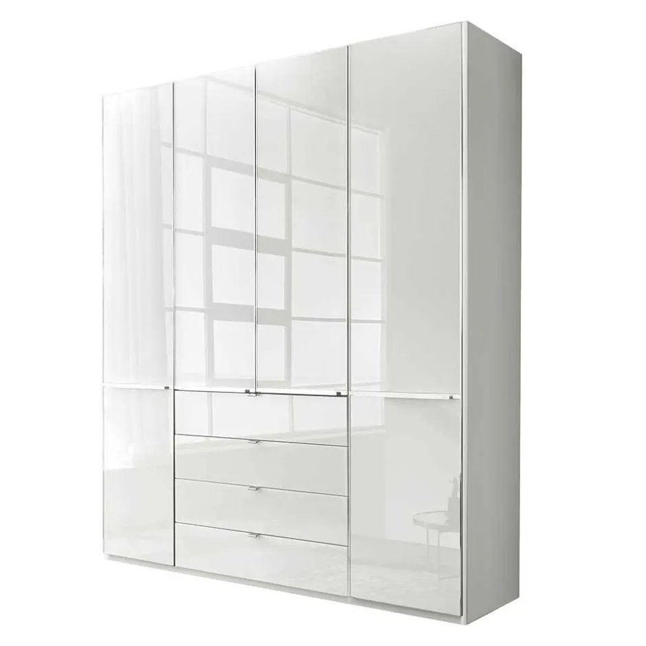 - Oberfläche der Front mit Glas beschichtet, Korpus foliert, Innendekor Silber-Grau gestreift foliert