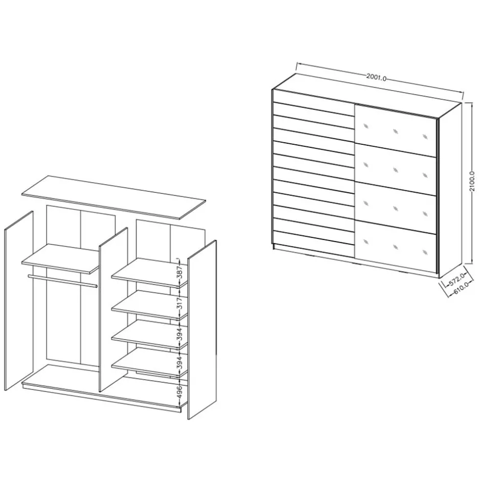 - 200 cm Breit, 210 cm Hoch, 61 cm Tief