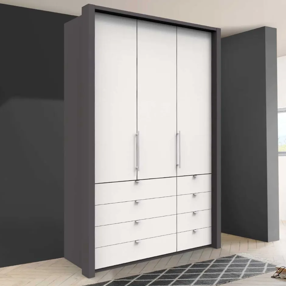 - Zwei Facheinheiten, jeweils mit zwei Einlegeböden und einer Kleiderstange ausgestattet