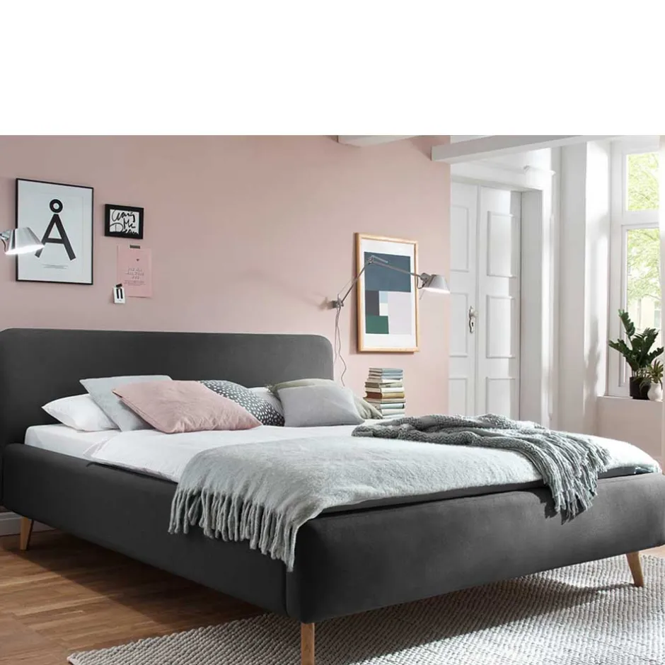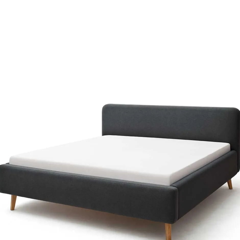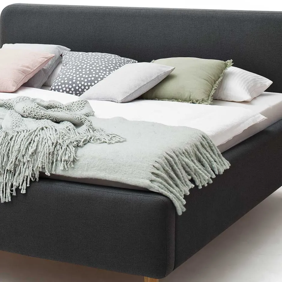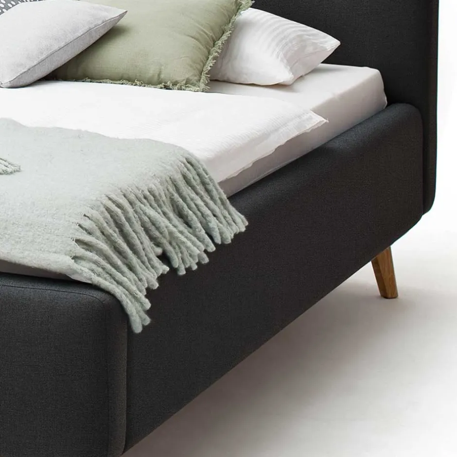 - Trendiges Polsterbett in Anthrazit und Eichefarben