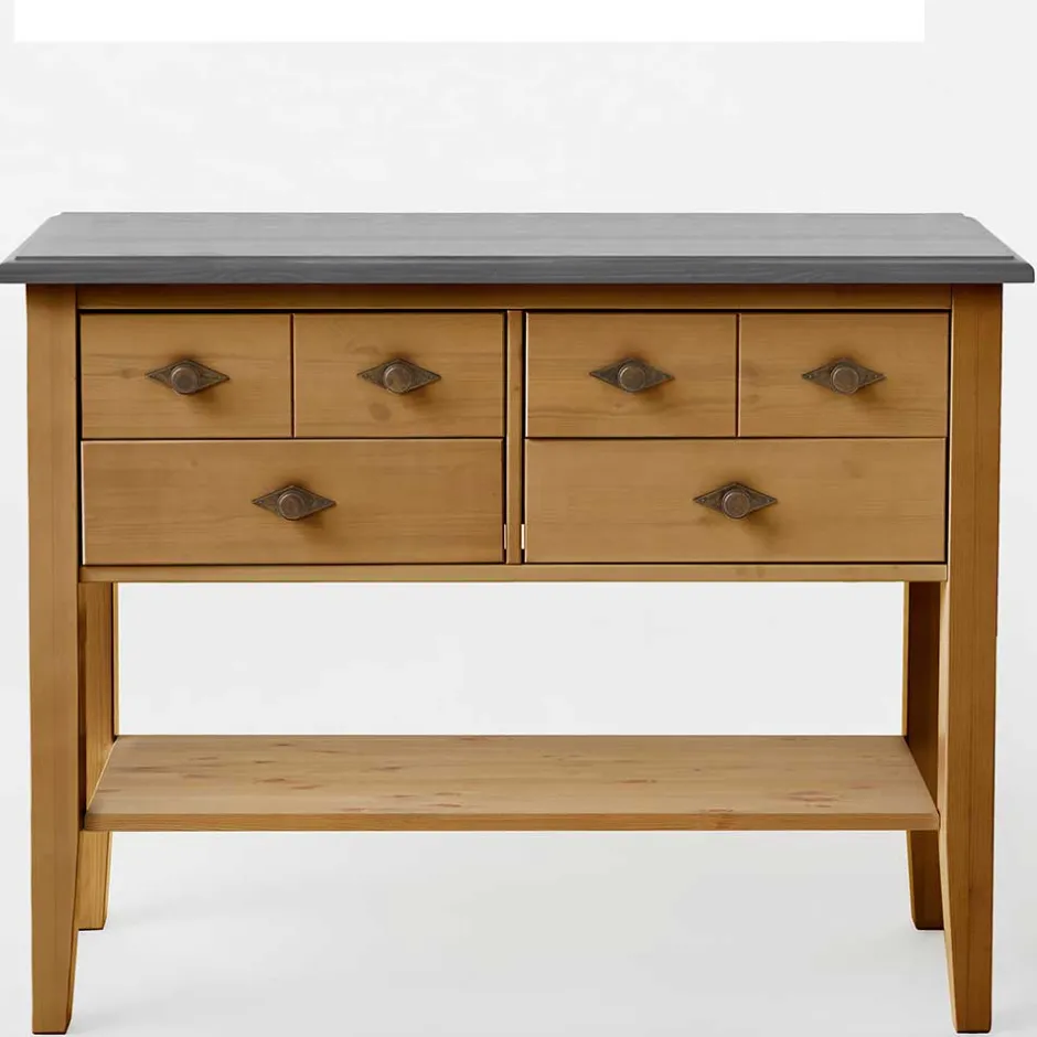 - Robuster Konsolentisch in Kiefer Laugenfarben und Grau