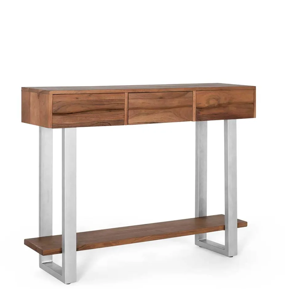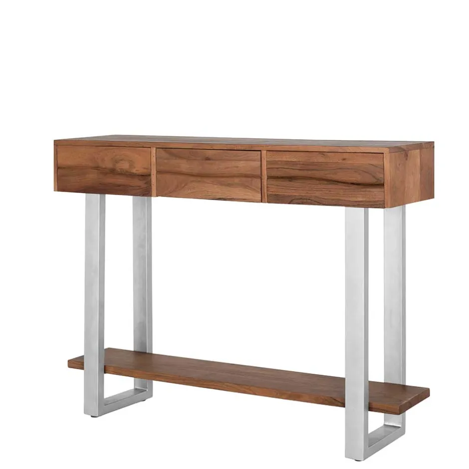 - Attraktiver Konsolentisch in Akazie und Silberfarben