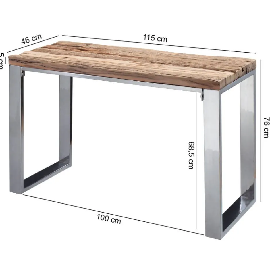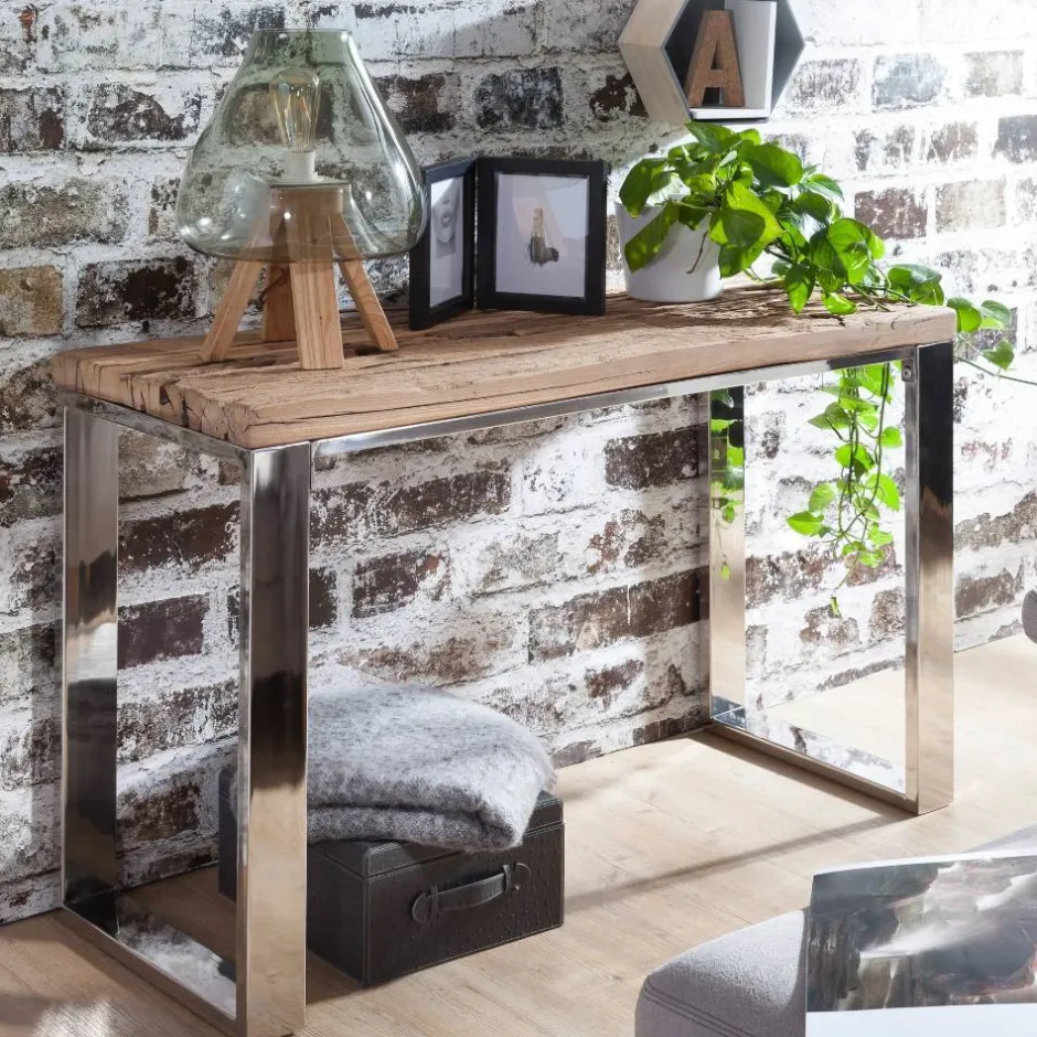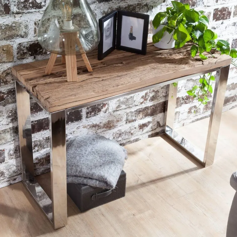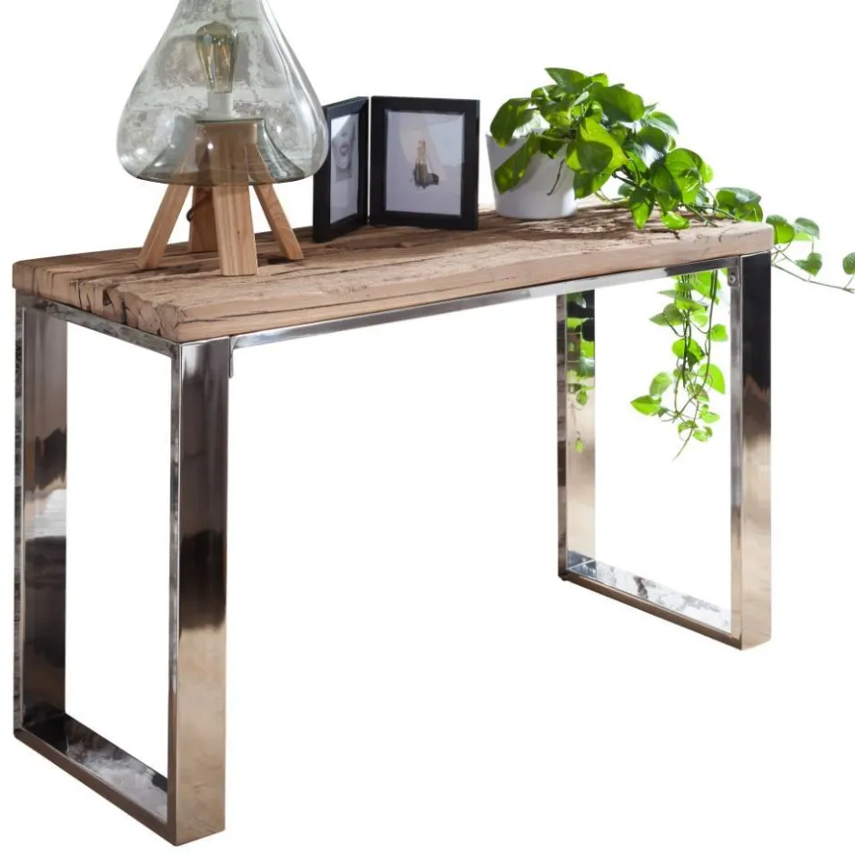 - Kontraststarker Konsolentisch in Akazie Naturfarben und Chrom