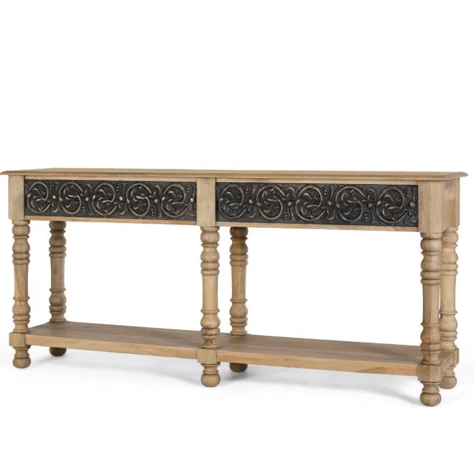 - Exklusive Konsole in Mangoholz Naturfarben und Dunkelgrau