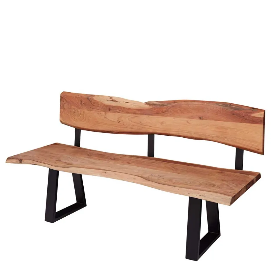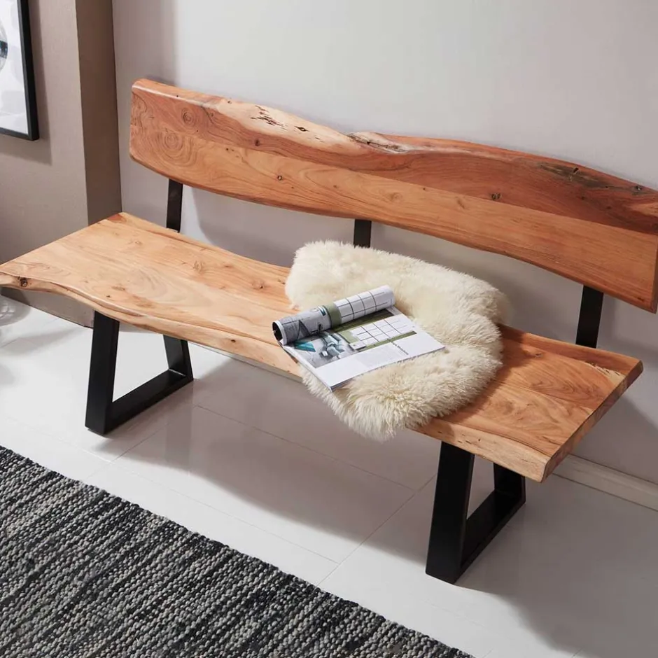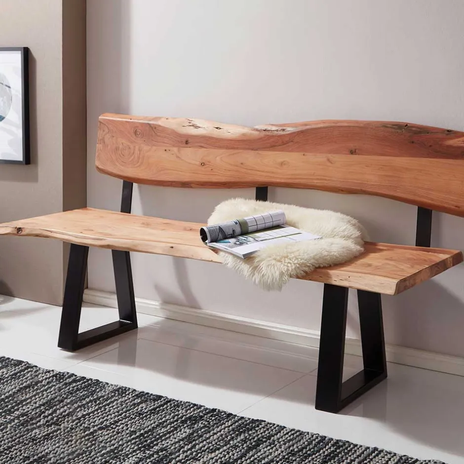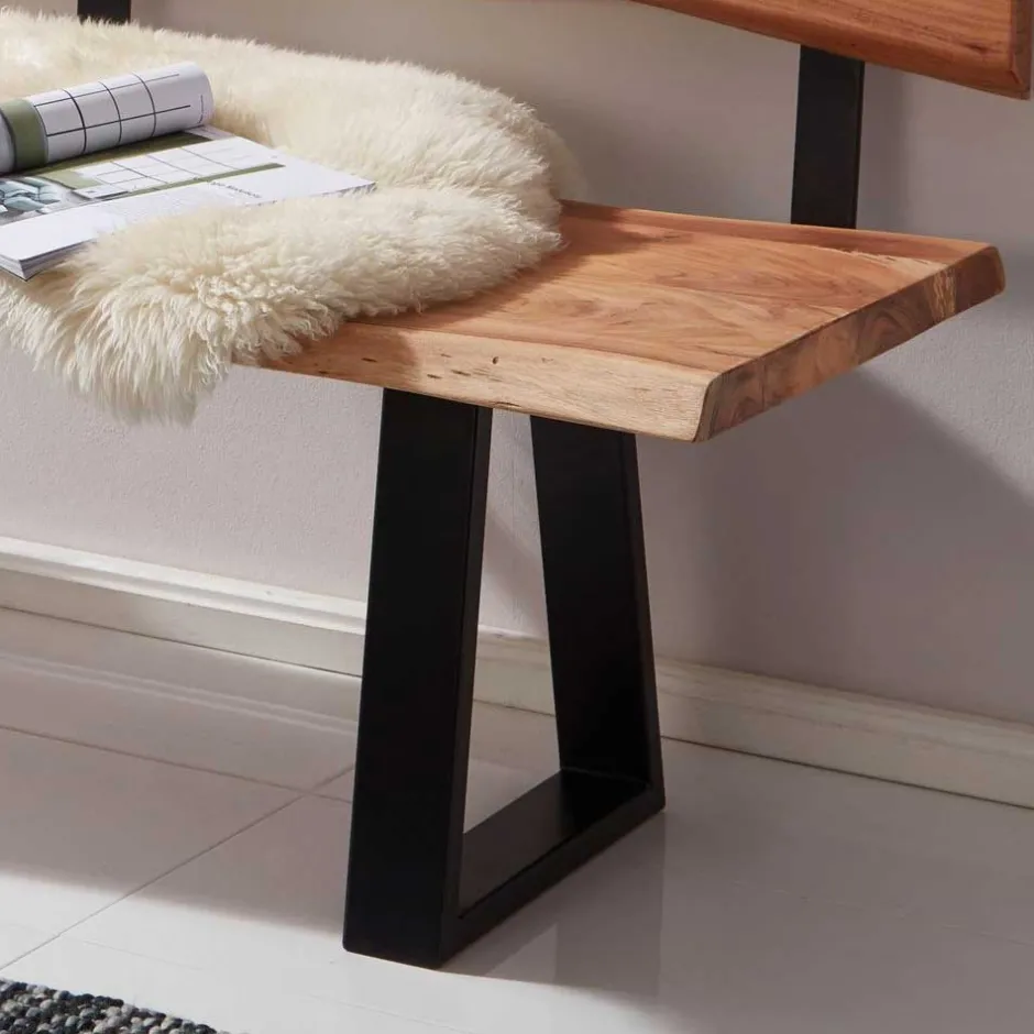 - Rustikale Bank in Akaziefarben und Schwarz