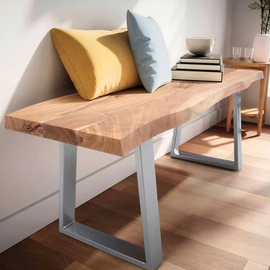 - Markante Garderoben Sitzbank in Akazie- und Chromfarben