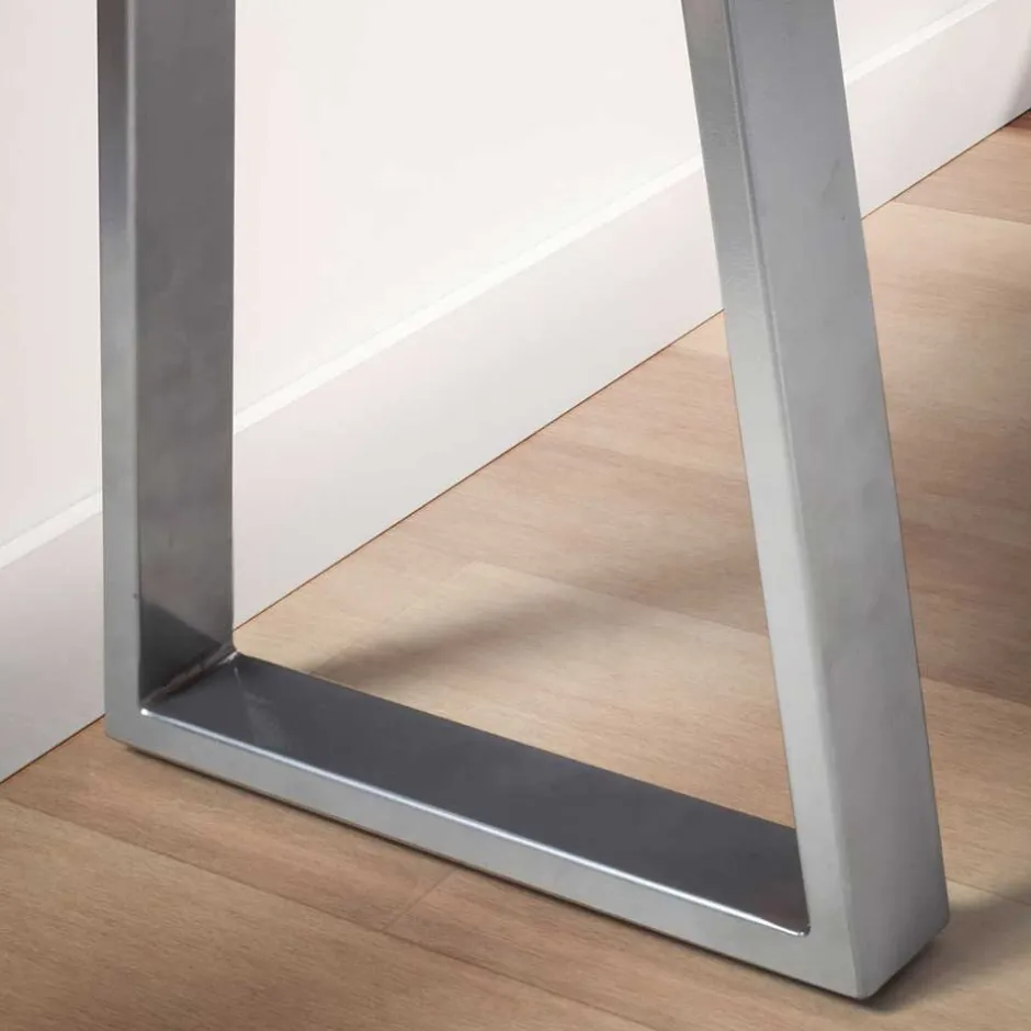 - Trapezförmiges Bügelgestell aus chromfarbigem Metall