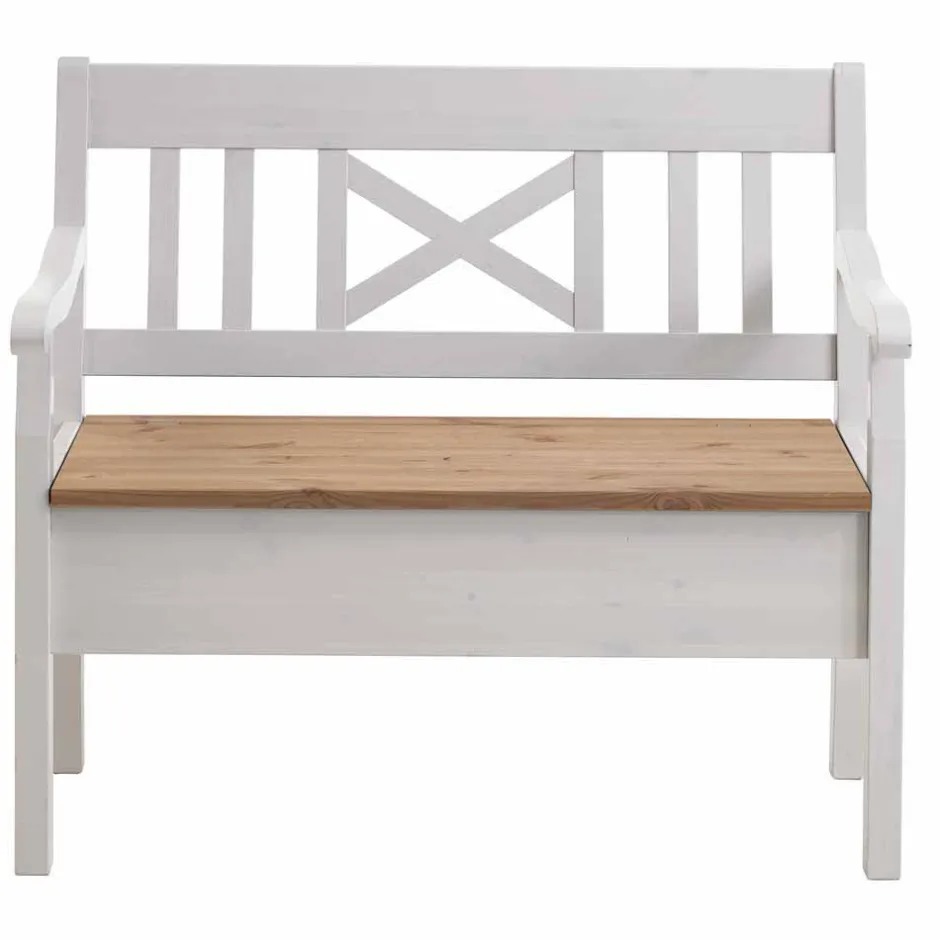 - Ansprechende Sitzbank in Weiß und Kiefer laugenfarbig