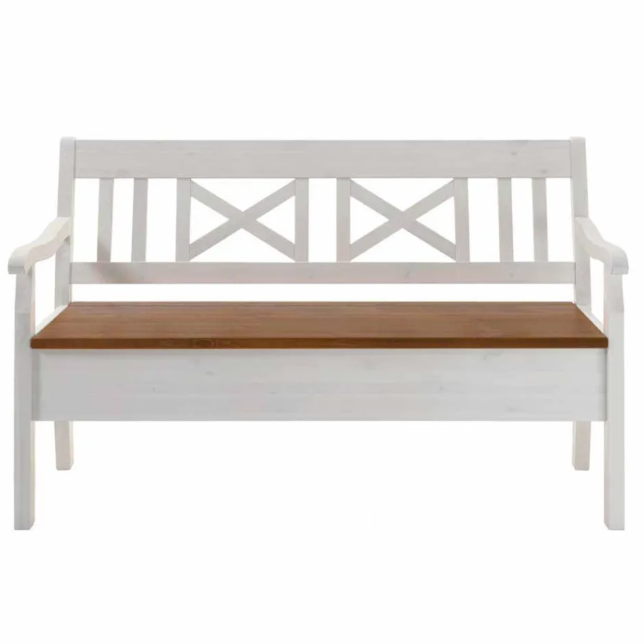 - Idyllische Sitzbank in Weiß und Kiefer Bernsteinfarben