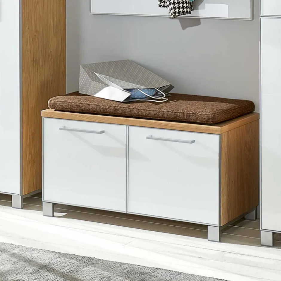 - Attraktive Garderobenbank in Eiche Bianco und Weiß