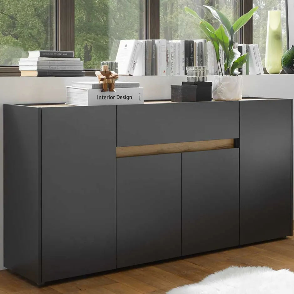 - Repräsentables Sideboard in Anthrazit und Wildeichefarben