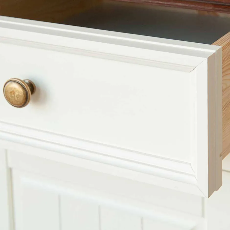 - Liebevolle Details wie eine formschön gefräste Deckplatte, Schubladen in Kassettenoptik und Türen mit Rillenstruktur unterstreichen die Hochwertigkeit
