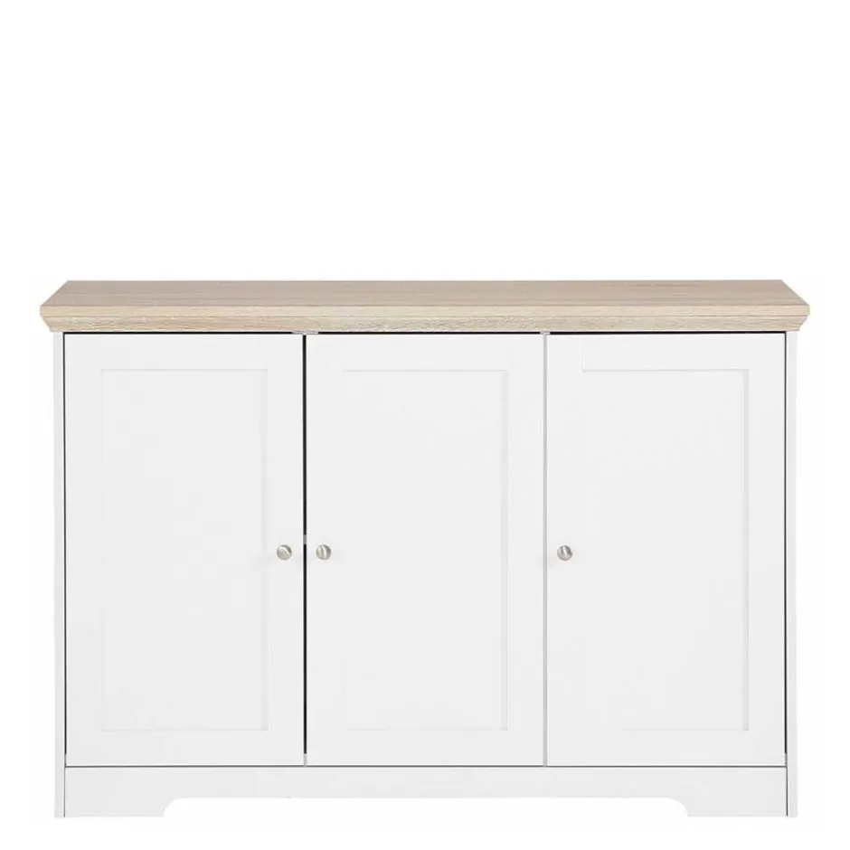 - Dekoratives Sideboard in Weiß und Eichefarben