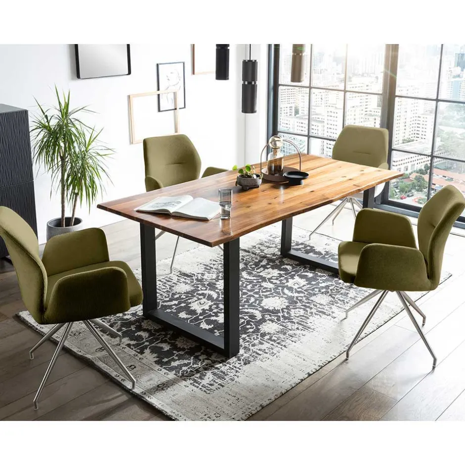 - Trendiger Stuhl in Oliv Grün und Silberfarben