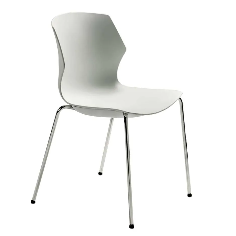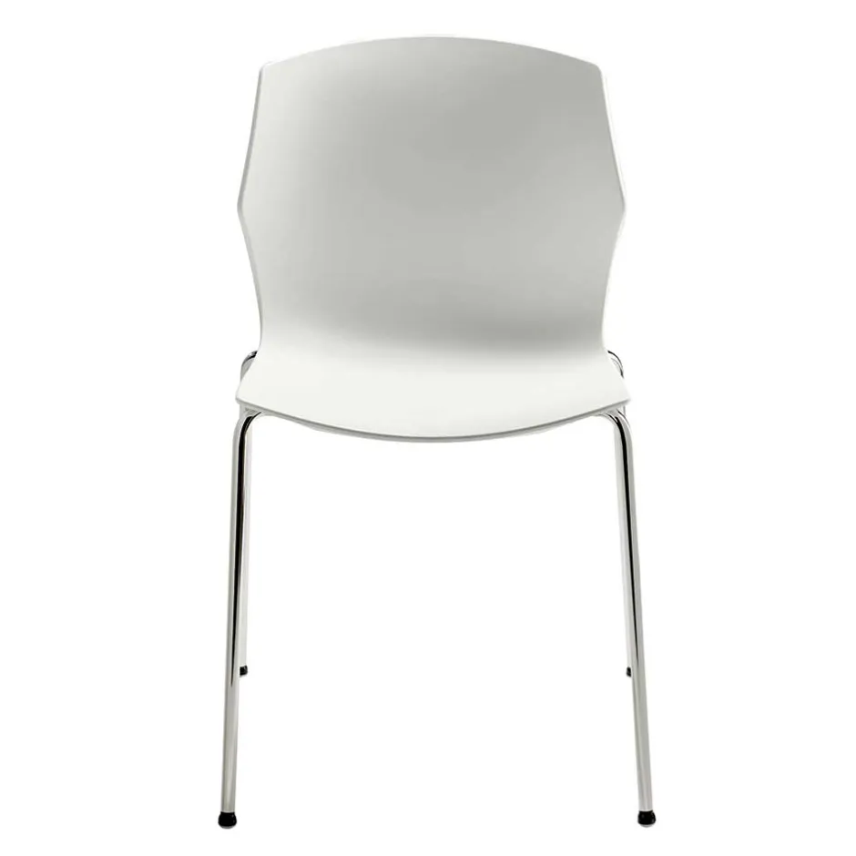- Dezenter Stapelstuhl in Weiß und Chromfarben