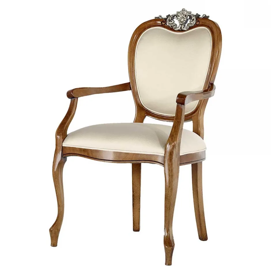 - Rückenlehne in Medaillonform mit silberfarbig lackierter Schnitzerei