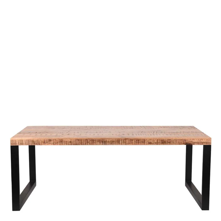 - Robuster Esstisch in Mangoholz Naturfarben und Schwarz