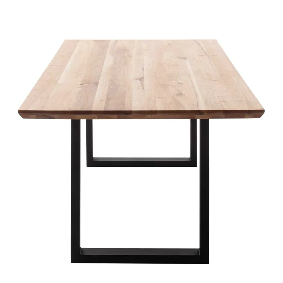 - Ein schwarz pulverbeschichtetes Metall Bügelgestell unterstreicht den industriellen Charakter des Tisches