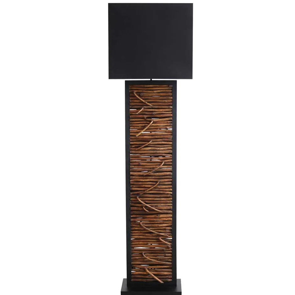 - Interessante Stehlampe in Schwarz und Holz Naturfarben