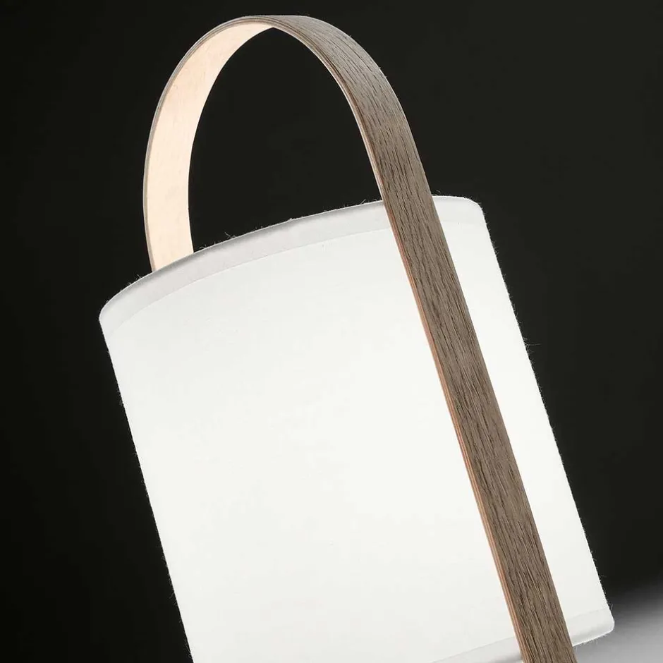 - Formschöne Tischleuchte in Weiß und Buchefarben